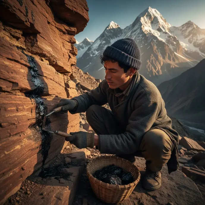 We source our Shilajit resin from the pristine, towering peaks of the Afghan mountains, hand-harvesting the rich mineral substance with profound care and respect for its rugged, natural origins.
